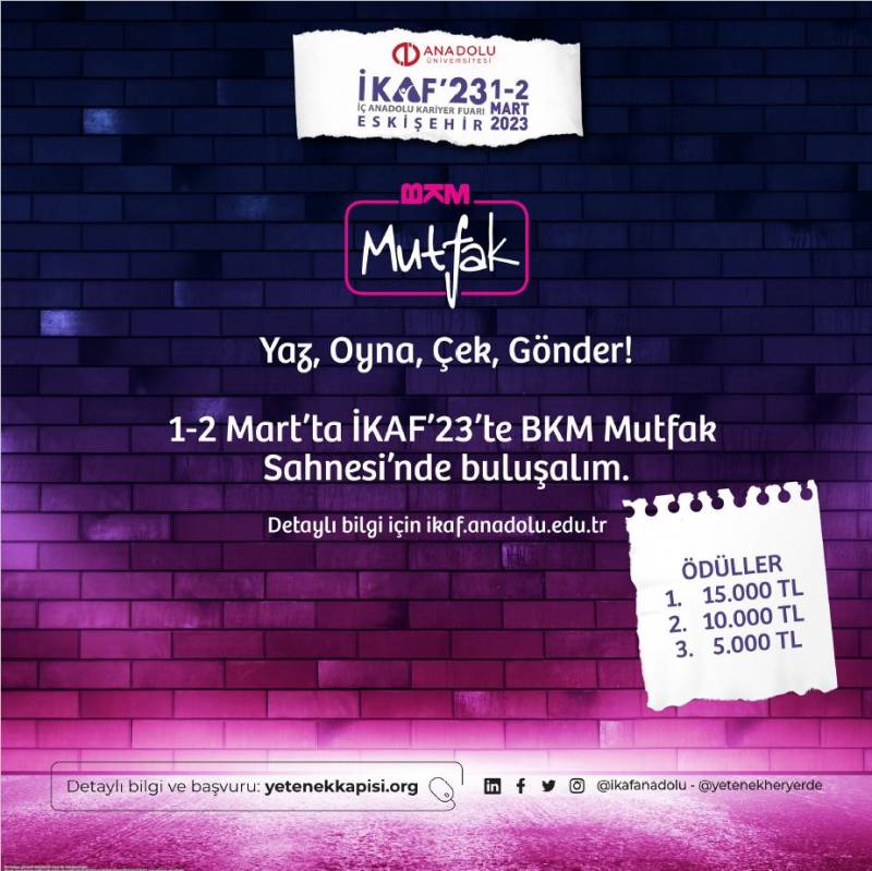"Yetenek Her Yerde" teması ile Cumhurbaşkanlığı İnsan Kaynakları Ofisi Başkanlığı'nın koordinasyonunda 20 Üniversitenin katılımı ile düzenlenen İç Anadolu Bölgesel Kariyer Fuarı (İKAF'23), 01-02 Mart 2023 tarihlerinde Anadolu Üniversitesi’nin ev sahipliğinde gerçekleşecektir.