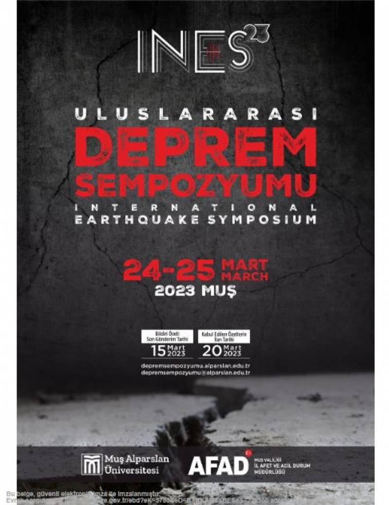 Muş Alparslan Üniversitesi, 24-25 Mart 2023 tarihlerinde çevrimiçi gerçekleştireceği deprem konulu INES’23 (International Earthquake Symposium) bilimsel etkinliğe alanında uzman isimleri davet ediyor. Sempozyumda Felsefe, Sosyoloji, Psikoloji, İletişim, Hukuk, Ekonomi, İşletme, Çalışma, Ekonomisi, Kamu Yönetimi, Şehir Planlama, Kentleşme, Çevre, Sosyal Politika, Eğitim, İlahiyat, Temel Bilimler, Mühendislik, Mimarlık, Planlama, Sağlık Bilimleri gibi çok çeşitli disiplinlerden özgün, derleme ve saha çalışmaları tarzında tam metin ya da özet bildiri kabul ediyor. Sempozyumda yurt içinden ve dışından depremle ilgili çalışmaları bulunan bilim insanlarının bir araya getirilmesi öncelikli amaç olarak gözetiliyor. Katılımcılardan, depremin teknik ve sosyal açıdan zararlı etkilerini azaltıcı önlemlerin alınması yönünde sahip oldukları güncel bilgileri ve teknik önerileri paylaşmaları bekleniyor. Sempozyuma sunulan bildirilerin özet metinleri özet bildiri kitabında, tam metinler ise hakem sürecine tabi tutulduktan sonra aşağıda isimleri verilen dergilerde yayımlanacak. Sempozyuma katılım ücretsiz olacak.