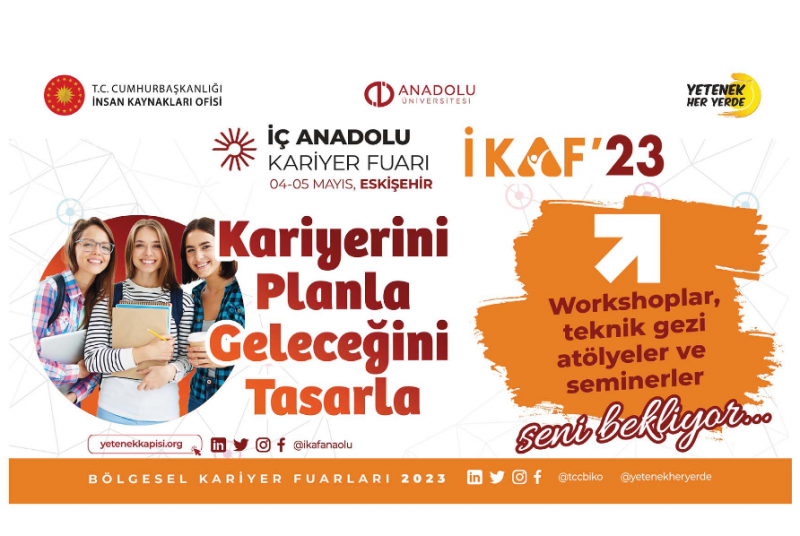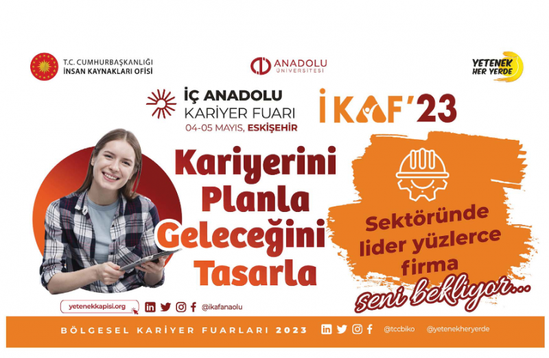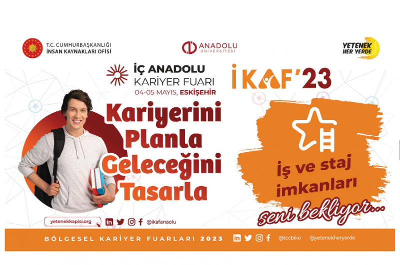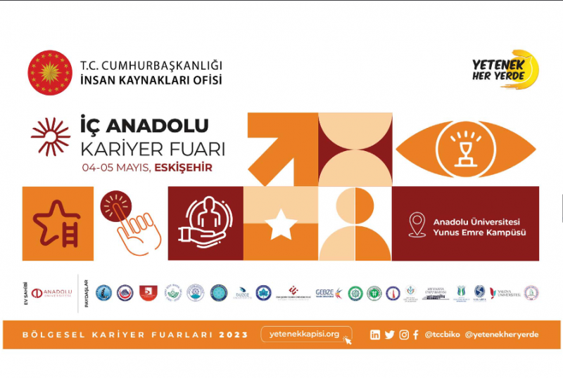 4-5 Mayıs tarihlerinde Türkiye Cumhuriyeti Cumhurbaşkanlığı İnsan Kaynakları Ofisi koordinasyonunda ve Anadolu Üniversitesi ev sahipliğinde Eskişehir'de düzenlenecek olan İç Anadolu Kariyer Fuarı'nda yüzlerce firma ile iş ve staj imkanları, mülakat simülasyonları, seminerler, workshoplar, teknik geziler ve daha birçok etkinlik sizi bekliyor.