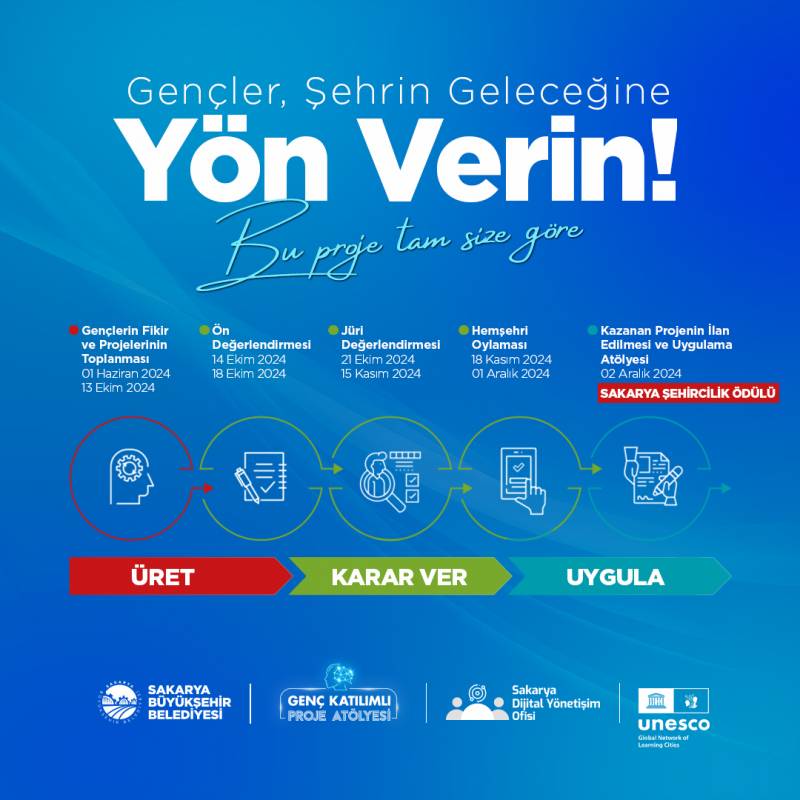 Sakarya Büyükşehir Belediyesi, Strateji Geliştirme Dairesi Başkanlığı tarafından yürütülen Sakarya Dijital Ofisi çatısı altında Genç Katılımlı Proje Atölyesi 2024 Fikir Yarışması gerçekleştirilmektedir. Genç Katılımlı Proje Atölyesi ile gençlerin şehrin geleceğine dair fikir geliştirip projelendirerek karar verme süreçlerine dâhil olması amaçlanmaktadır. Fikir Yarışmasında hemşehri oylamasının ardından birinciliğe layık görülen projeye “Sakarya Şehircilik Ödülü”, hemşehri oylamasına katılan her bir projeye ise “Katılım Teşvik Ödülü” verilecektir.