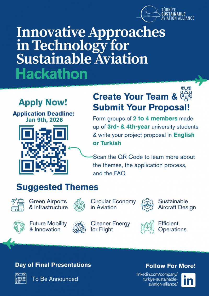 İstanbul Teknik Üniversitesi proje yönetimini üstlendiği ve BOEING ile THY’nin kurucu üyesi olduğu Türkiye Sürdürülebilir Havacılık Platformu (TSAA) tarafından üniversite öğrencilerine yönelik “Innovative Approaches in Technology for Sustainable Aviation Hackathon” yarışması düzenlenmektedir.